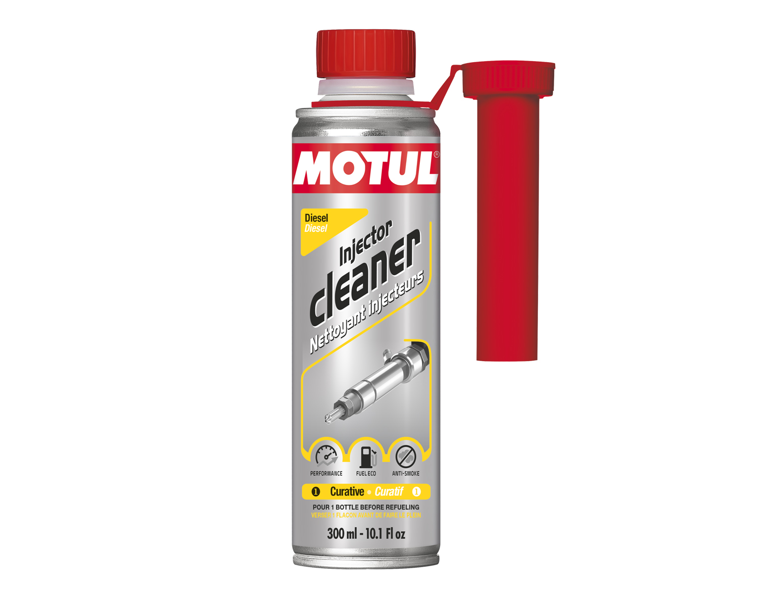 MOTUL INJECTOR CLEANER DIESEL est un nettoyant curatif puissant conçu pour purifier l’intégralité du système d’injection Diesel. Sa formule avancée élimine efficacement les dépôts, les gommages et les vernis sur les injecteurs et la pompe haute pression, tout en dispersant l’eau de condensation pour prévenir l’oxydation. En restaurant une pulvérisation optimale, il permet de retrouver les performances d’origine de votre moteur, de faciliter les démarrages à froid et de réduire significativement la consommation ainsi que les émissions polluantes.